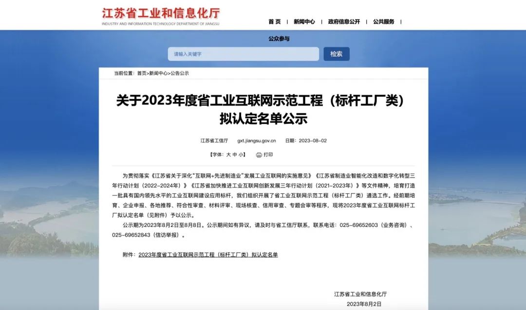 近日,江苏省工业和信息化厅公示2023年度省工业互联网示范工程(标杆工厂类)拟认定名单。目前,名单已通过公示期,江苏黄金城富朗特新能源有限公司凭借“黄金城智能制造工业互联网平台”成功入选2023年度省工业互联网标杆工厂。